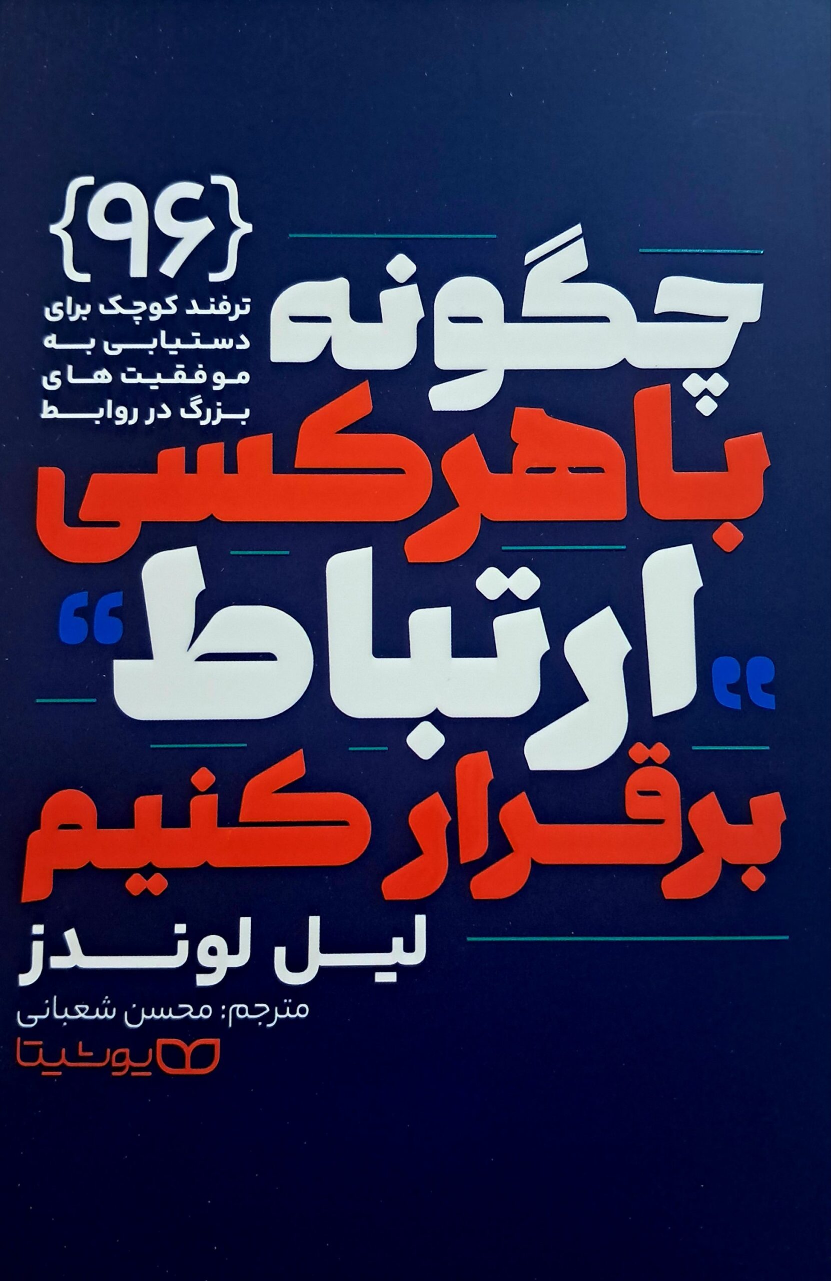 کتاب چگونه با هر کسی ارتباط برقرار کنیم؟ نوشته لیل لوندز، راهنمای عملی و کاربردی برای توسعه مهارتهای اجتماعی و ایجاد روابط مؤثر است. لوندز با ارائه تکنیکها و مثالهای ملموس، توضیح میدهد چگونه میتوان با اعتمادبهنفس، جذابیت و هوش اجتماعی، ارتباطات شخصی و حرفهای خود را بهبود داد. این کتاب به خواننده میآموزد چگونه با افراد مختلف اعتماد بسازد، گفتگوهای معنیدار داشته باشد و بر دیگران تأثیر مثبت بگذارد.